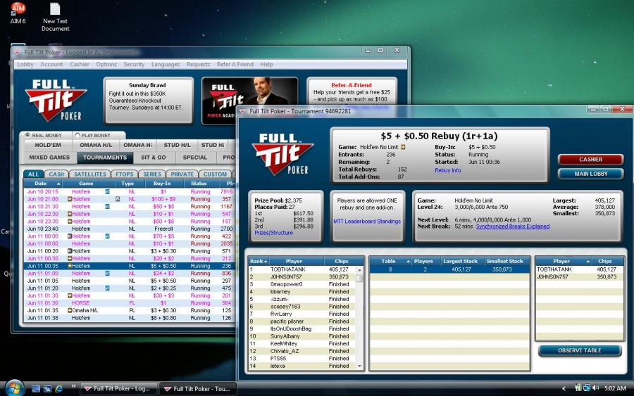 Took 3rd in a full tilt 5 rebuy, ended at 5 am. TY EEj cause i was watching some of the movies i had.. purchased the other day. Was wondering if that best MTT finish thing was still, going on, couldnt find the thread so.... i hope i attached the pic to this email correctly, im kind of an idiot.